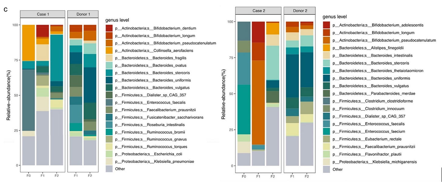 So this is great! If we can get my friend’s mom an FMT, we might be able to help her. But, for some deeply stupid reasons, that’s easier said than done—at least if you want it done by a doctor. But maybe we can learn a little more about the disease from this FMT study, see if there’s anything we can do in the interim to buy us some time. Fortunately, they sequenced both of the patients’ microbiomes, as well as the donor’s, before and after the treatment.
